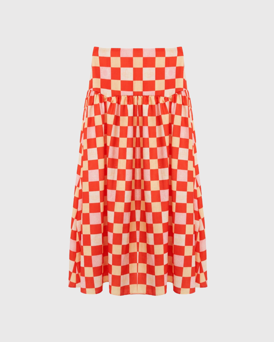 Falda midi de tiro medio con canesú en el mismo color y cremallera oculta en...