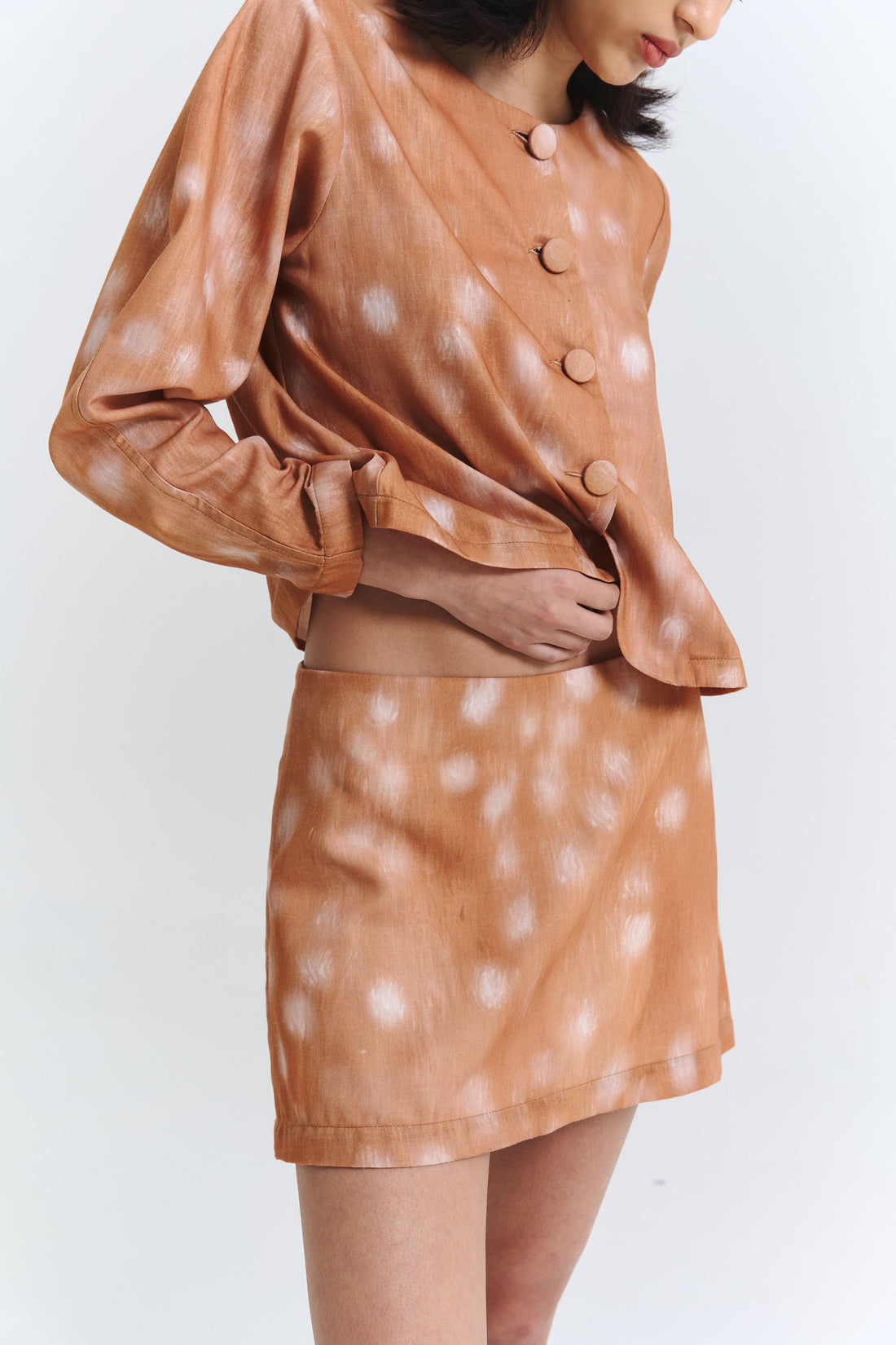 Falda corta de tiro medio con silueta recta y caída suave que se adapta naturalmente...