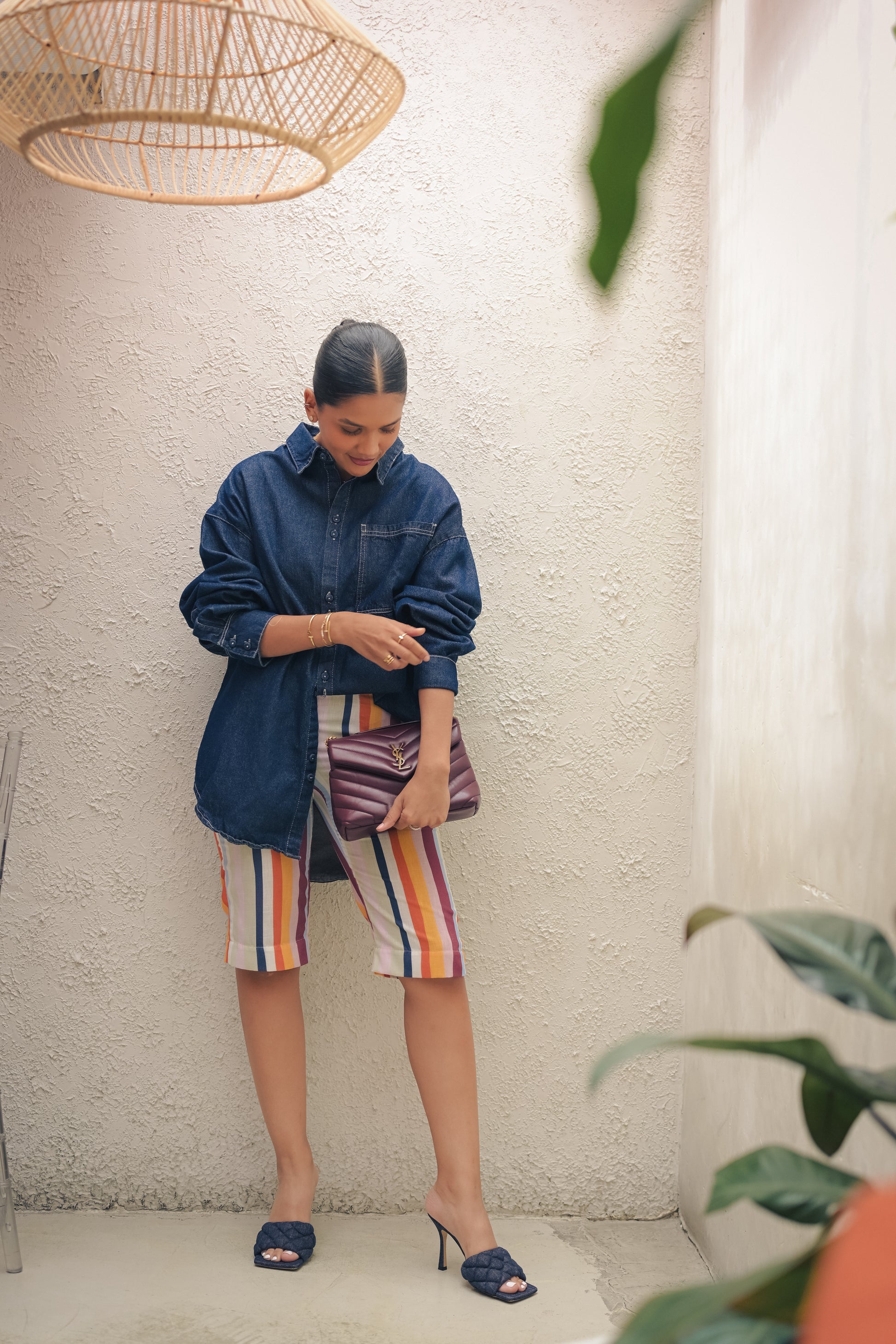 Capri de silueta recta con pretina definida y largo a media pierna. Presenta bolsillos traseros y un acabado limpio que estructura la prenda. Diseñado y confeccionado en Colombia. Colaboración con María Riba (2025)