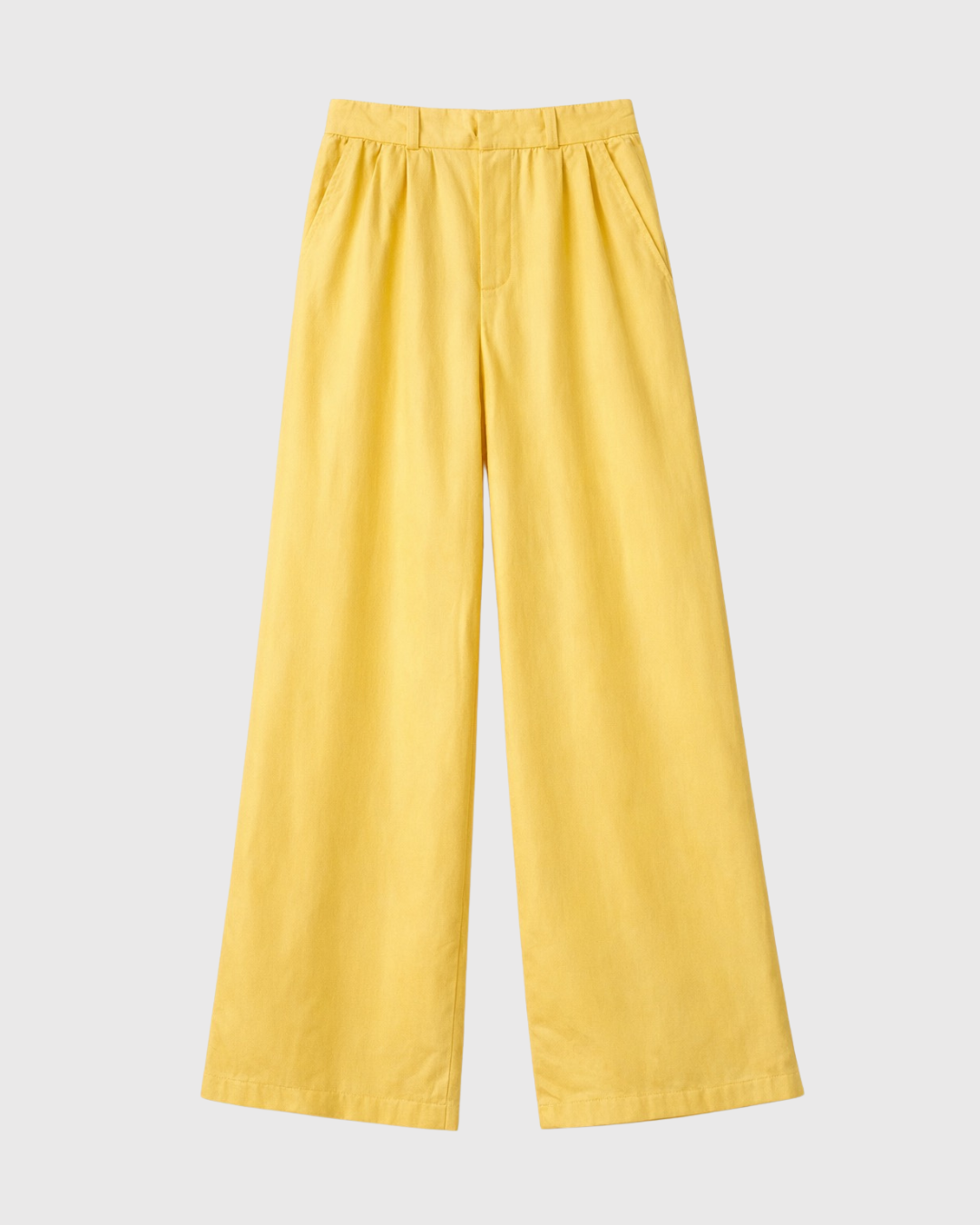 Pantalón estampado de tiro alto con prenses, botones ocultos y bota recta. Diseñado y confeccionado en Colombia.